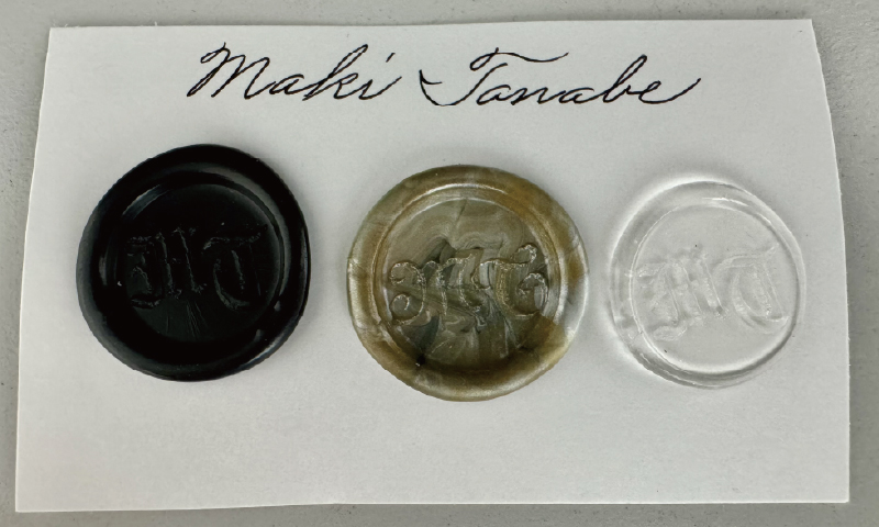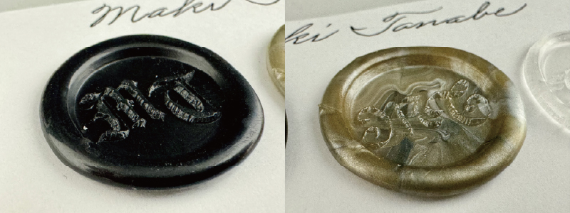 といった加工を施し、溶かしたワックスに型押しすることで、美しいスタンプが完成しました。