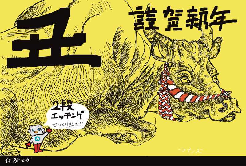 とても良いイラストだったため、次回の丑年にはぜひこのデザインを使用しようと約束しました。
